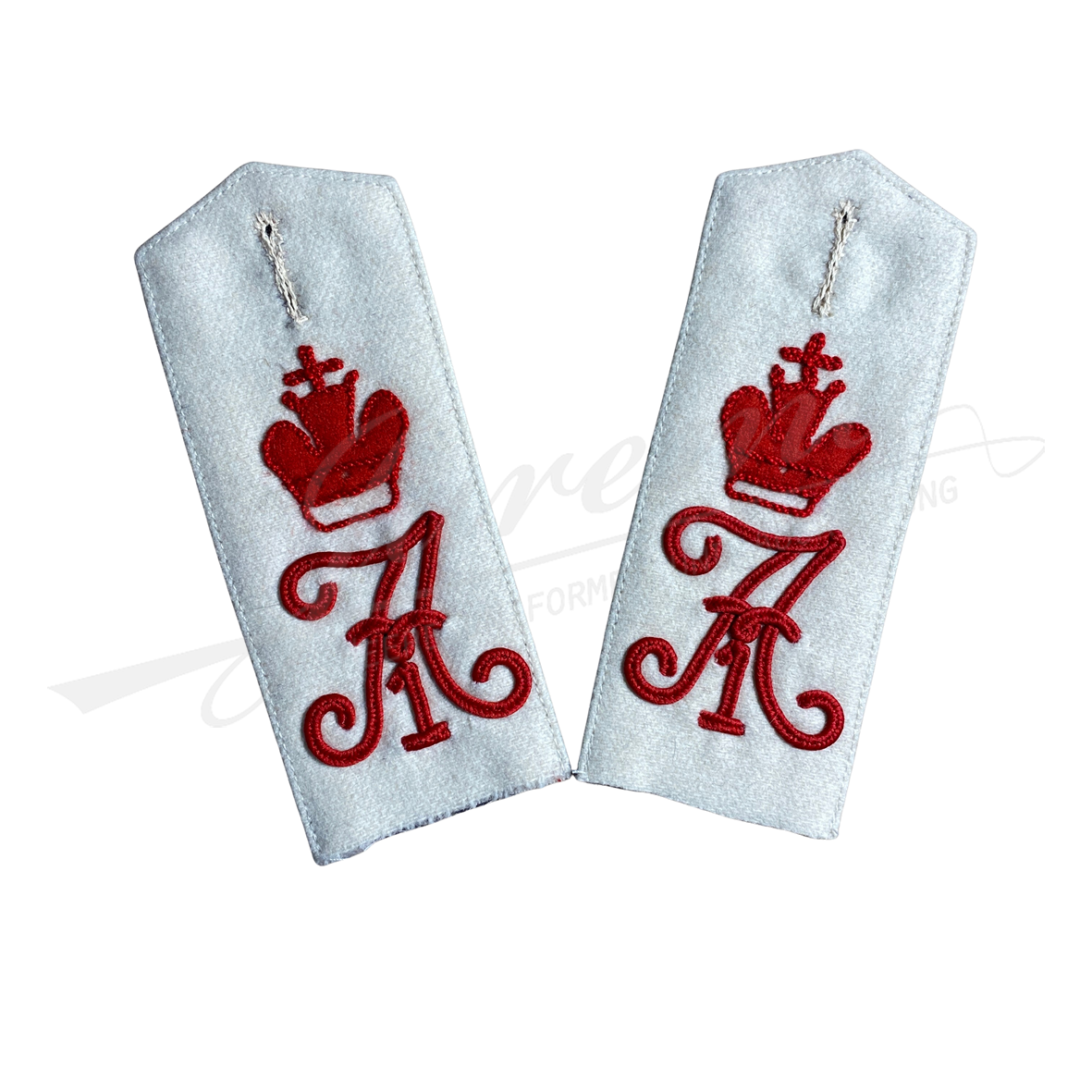 Hand-made red wool crowns and red soutache monograms for German Imperial shoulder boards for Kaiser Alexander Garde-Grenadier-Regiment Nr. 1