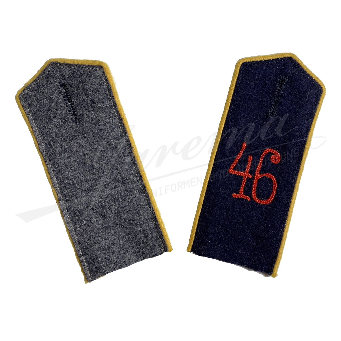German shoulder boards (Achselklappen) for enlisted and NCOs, intended for pre-1907 great coats. Made of Prussian blue wool with woollen piping on steingrau backing and with linen inner layer. If you need other colors please text me on fb. Piping color should be same as the main color of bunter Rock shoulder boards (so Armeekorps color).